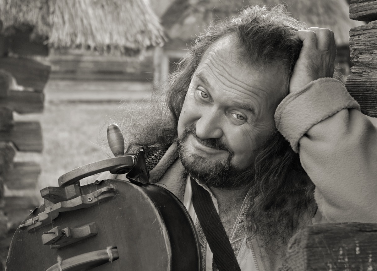 – Та то випадково! Я ж в принципі актор, виступаю… Для мене нічого нового в цьому немає. Наприклад, зобразити татарина в «Чорному козаку» довелось, бо не було когось іншого на цю роль. Але потім, коли почалася війна, ми вирішили, що татар негативно показувати не можна, і переробили їх загалом на якихось бандитів. В тому числі перетворили мене на москаля, і вийшов вдалий образ, смішний і запам’ятовується. А в «Пекельній хоругві» я грав лірника, але була задумка набагато краща, та не вдалось її втілити. Була задумка зробити епічну річ. Справа в тому, що я, коли читав літописи, надибав на цікавий опис польського хроніста. Він писав: козаки йдуть в бій під музику своїх органів. І всі думали, що органи там – то гармати стріляють. Насправді «органіструм» називалась ліра. Лірники грали, а коли лірників два-три-чотири збереться – це звучить!.. Чому кобзарі не любили лірників, вони ворогували? Тому що, коли на базарі кобзар грає, лірник його заглушає, не дає заробити!Всі пам’ятають класний кадр із фільму «Хоробре серце» з Мелом Гібсоном, коли волинки починають грати – таке саме я хотів зробити з лірами. Стоять три-чотири лірники, гарно зняті, і під цю музику йде бій… Але, на жаль, цього не вийшло. Лишились тільки два лірника, і з записом пішло щось не так… Але, як кажуть, що я хотів і що вийщло – різні речі. Вже на дубляжі ліру дописав. Тобто якихось таких акторських здібностей не треба було, я просто сам себе грав… навіть не грав. Весь час же виступаю, тому для мене великої різниці нема. Камери не боюся, тексту. У «Чорному козаку» вже потім, коли зняли і довелося татарина на москаля переписати, з текстом довелося погратися: щоб ліпсинг потрапив, щоб ідея не пропала… Зате з’явився характерний персонаж зрадника, падлюки, якраз лягає на тему війни: у своїх украде – а потім каже: «Меня здесь не было!» Отак і є. Мені пишуть: москаль я ніякий, не виходить у мене. Але люди зрозуміли образ: він і смішний, і одразу все стає чітко й ясно. А в мультсеріалі «Моя країна – Україна»свого героя я озвучував, і навіть деякі знахідки були під час озвучки. Наприклад, у серії про Одесу: «Подскажите, пожалуйста…» – «Nichtverstehen, nichtverstehen!»