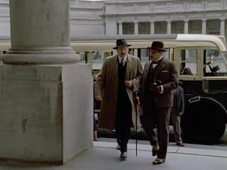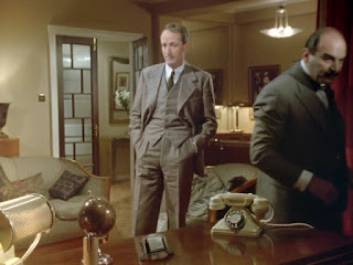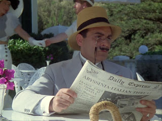 6. В епізоді «Triangle at Rhodes» за самим сюжетом проступають контури політичної кризи, яка могла закінчитися війною між Англією та Італією. Майор Барнс нібито замається риболовлею, насправді оглядаючи стан італійських укріплень. Пуаро читає газету про кризу в Абіссинії. (Італійська підготовка до завоювання країни, чому намагалася завадити Британія). В офіційних установах бачимо портрети Муссоліні, який завдяки політичному блефу та неготовності Британії до війни зміг втримати останню від втручання. В кінці фільму Майор Барнс під надуманим приводом збирається до Абіссинії.