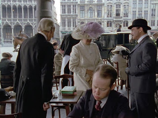 1. У багатьох серіях Пуаро співпрацює зі старшим інспектором Скотленд-Ярду Джеппом. В епізоді «The Chocolate Box» Джепп має отримати нагороду в Бельгії. На церемонію нагородження він, єдиний раз за весь серіал, вдягнув однострій. На цьому однострої три медалі. Перша з них — це зірка 1914 року, з розетою, яка означає, що нагороджений побував під вогнем. Її отримали ті, хто служив на фронті у Франції з 5 серпня по 22 листопада (найважчі часи першого етапу війни). Переважно це були вояки Британського експедиційного корпусу, тобто довоєнної армії. Інші дві нагороди — Британська військова медаль (за участь у Першій світовій війні) та медаль Перемоги. Отже, інспектор Джепп —герой війни. В цій серії також доволі цікаво показаний довоєнний Брюссель: оператор-постановник Кріс О’делл, зміг обрати такі ракурси в сучасному місті, що оминув ознаки сучасності.