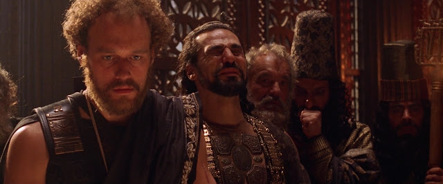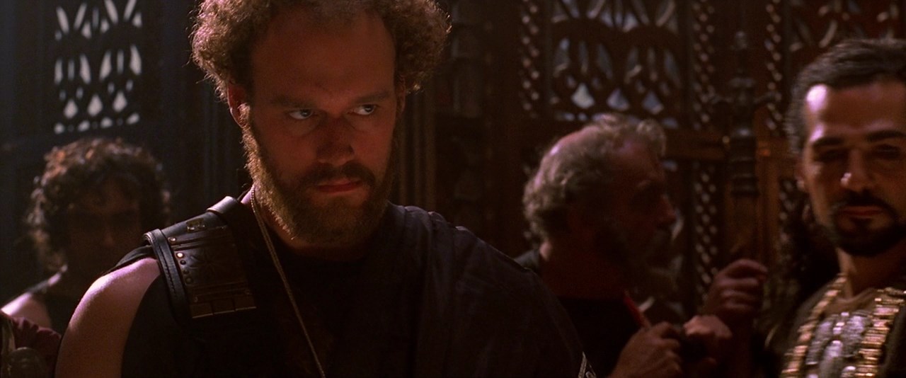 В наступному кадрі бачимо Фарнака у відчаї. Це зрозуміло: македонці одне одного готові перерізати, що ж буде з персидським вельможею? Мрії Олександра про мультикультуралізм тут ніхто не поділяє… Між іншим, Фарнака теж у титрах немає, але ж ми знаємо, що це він 🙂