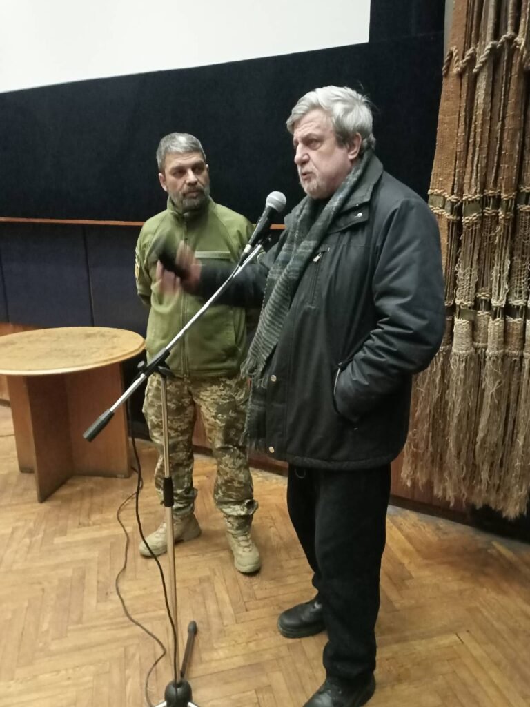 Перед показом виступив Сергій Тримбач, заступник голови Національної спілки кінематографістів України, відомий український кінокритик та кіноісторик, який поділився своїм баченням місця фільму «Тризуб Нептуна» в сучасному українському культурному контексті.